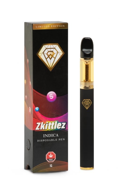 Zkittlez Disposable Pen. Allow us to introduce Diamond Concentrate’s line of rechargeable disposable vape pens! With a sleek and durable design, it is backed with smooth and easy functionality. Draw activated and convenient! Staying ahead of the overall curve, Diamond has raised the bar by including Live Resin and HTFSE, as well as distillate in these pens.